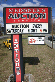 Meissner’s holds auctions every Saturday at 5pm. They are located on Route 20 (near Route 22) in New Lebanon, NY. You can stop by before the auction to check out the items or look at the listing online at MeissnersAuction.com..