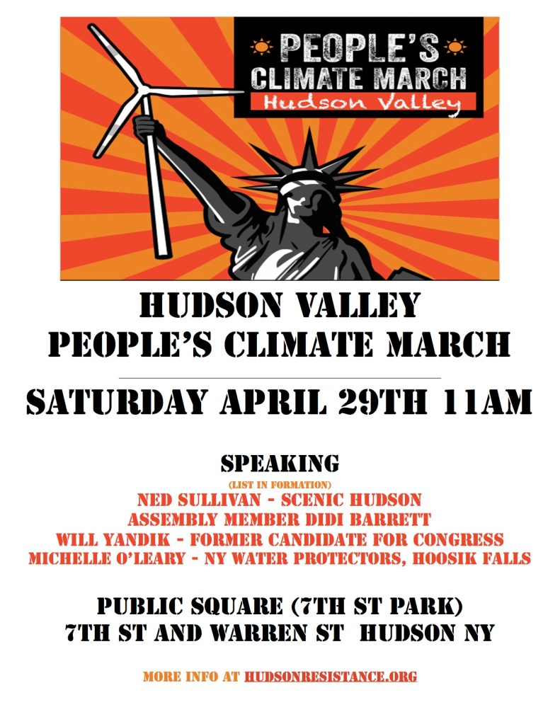 On April 29, 2017, hundreds of thousands of Americans will take part in a peaceful march to fight for our planet, and raise awareness of the growing climate crisis. The People’s Climate Movement is centered on the Washington DC march, and working with sister marches across the country, including one in Hudson NY.