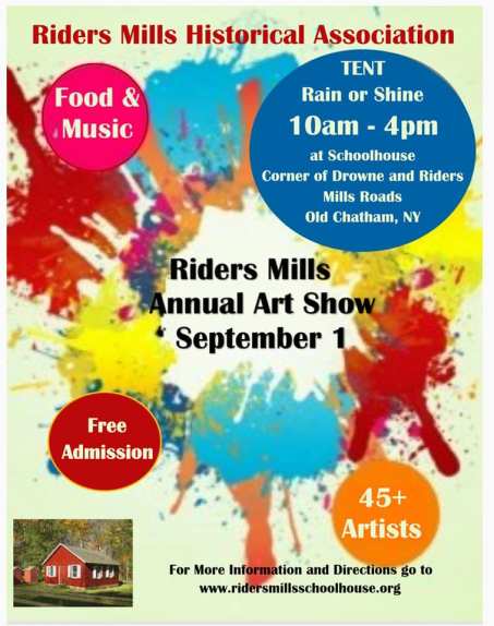 The Riders Mills Art Show at The Riders Mills Schoolhouse is this Saturday. This year’s annual event will feature 45 local and regional artists exhibiting their wares. There will also be food, music and a tour of the historic schoolhouse.