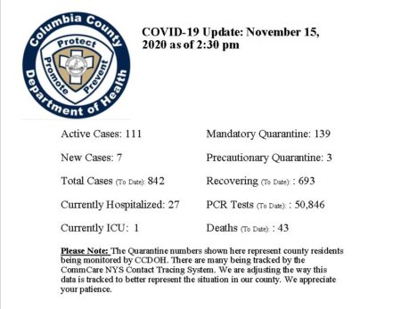 Following is the latest update from the Columbia County Department of Health.