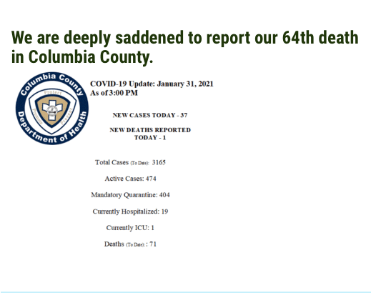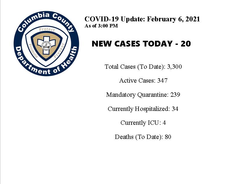 Following is the latest update from the Columbia County Department of Health.