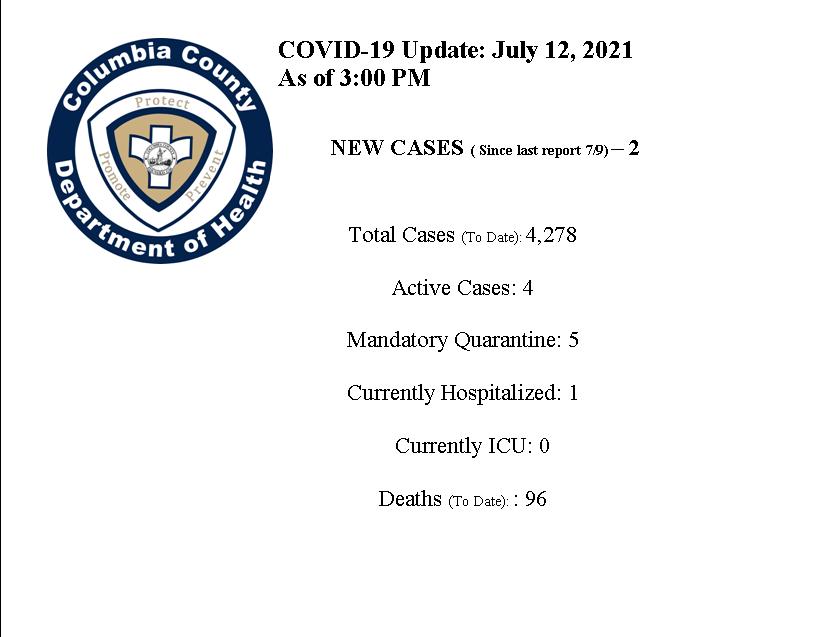 The latest update from the Columbia County Department of Health.