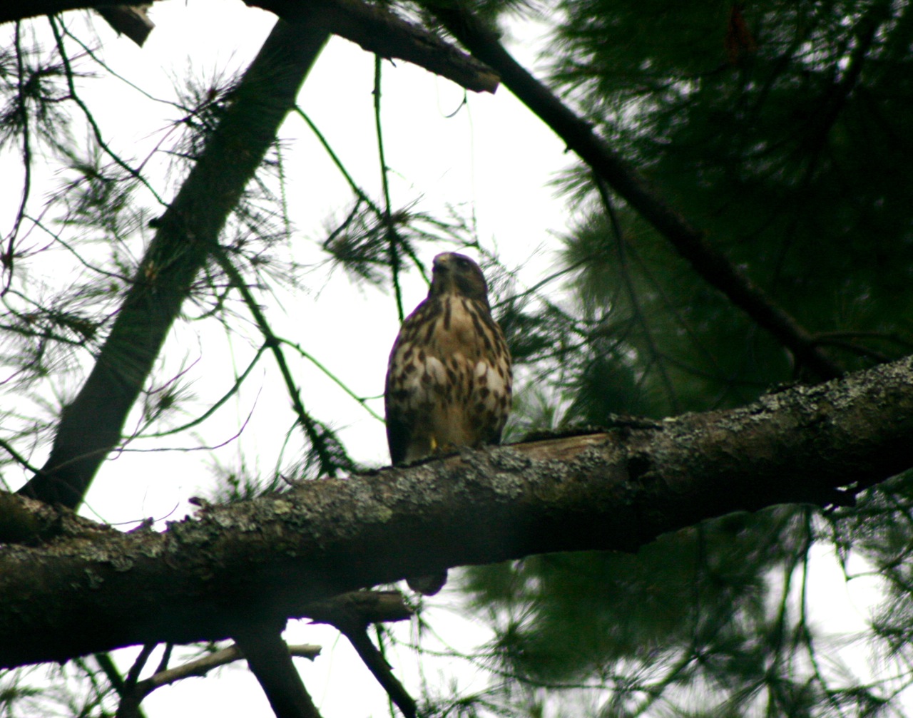 Looks like someone new just moved into one of the pine trees in the back yard. We have seen this big bird in and around the yard for the past week. So far, we haven’t noticed a decrease in the chipmunk population but lets hope they read this post and keep an eye on the sky.