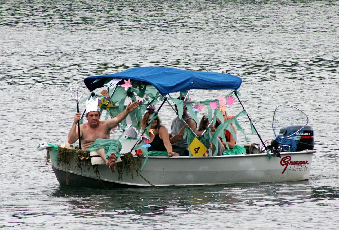 After seeing a sign on my way to the Backwater Grill for dinner on Friday night, I was fortunate enough to bear witness to the 37th Annual Queechy Lake Boat Parade in Canaan this past Saturday. While the rainy weather may have caused some of the entrants to back out of the parade, those remaining were showing great spirit, or in one or two instances, just their boat.