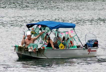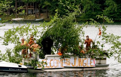 In addition to the Independence Day themed boat with flags and a cake, the gaming world was represented by an Angry Birds boat-float, and some recent college grads were celebrating their academic achievements while also keeping an eye out for potential jobs as they traveled down the lake.
